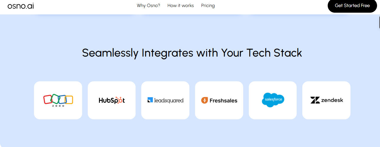 - CRM and Workflow Integrations: Osno.ai can integrate with existing CRM systems and scheduling tools, allowing businesses to automatically store call data, update lead status, and track interactions.