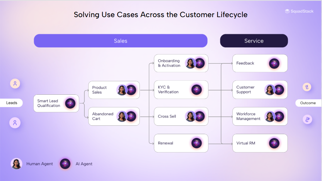 Not all conversations will be suitable for or amenable to automation. At SquadStack, we use a hybrid approach in which human and AI agents work together. In situations where conversations become emotionally sensitive, involve significant legal considerations, and require some degree of cognitive processing, there is a transition to a human agent.