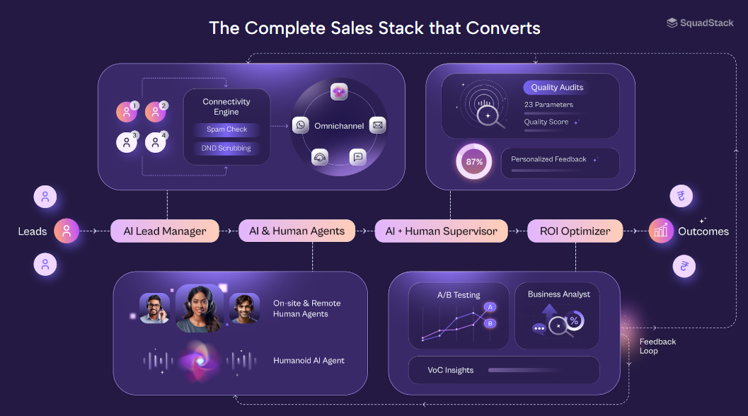 - SquadStack AI-based bot is trained on over 10 million hours of real customer conversations, not synthetic data.